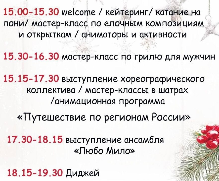 Мы ждем всех, чтобы вместе наполнить этот день зимним настроением, яркими приятными эмоциями и теплыми улыбками!